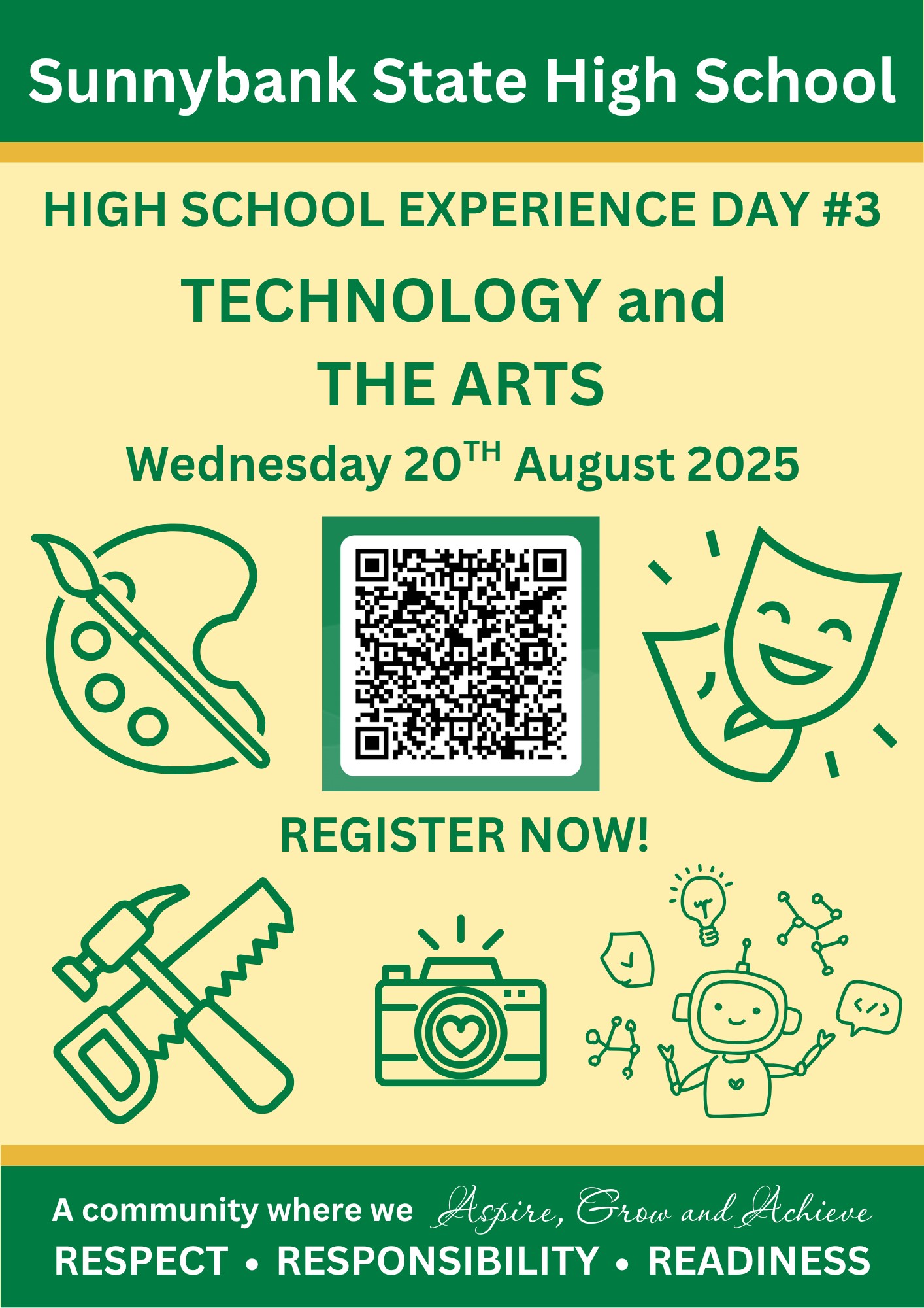 Throughout the day, students will have the opportunity to participate in a range of rotations in our Technologies and Arts departments. It will be an enjoyable and invaluable experience as the students participate in activities from our focus learning area throughout the day.